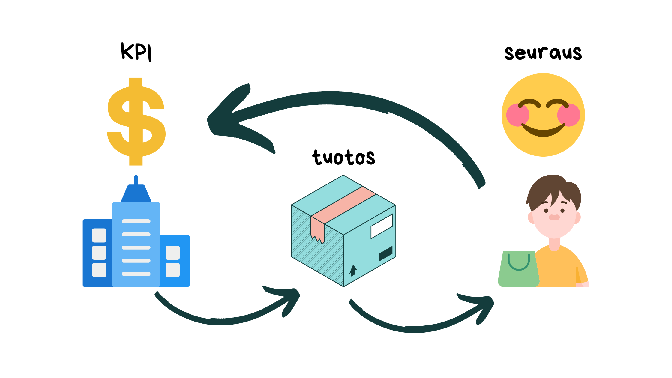 Tyypillisesti tuoteliiketoiminnalle asetetaan tavoitteet KPI-mittareiden tulosten muodossa. Esim.