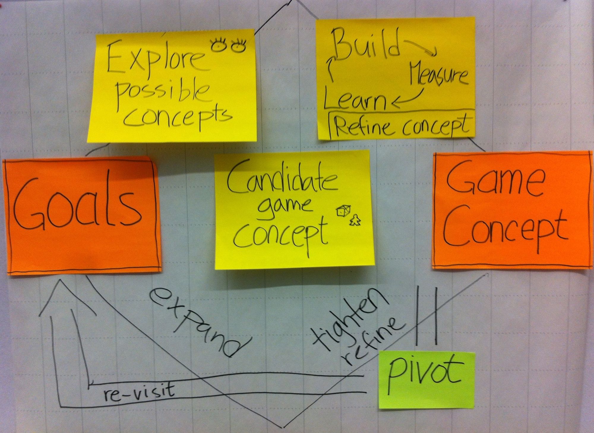 During the refining of the game concept it is also possible to make a pivot: a change of direction for the whole design endeavor. As in Lean startup, this move is a larger shift in the process in which the goal setting is re-visited.