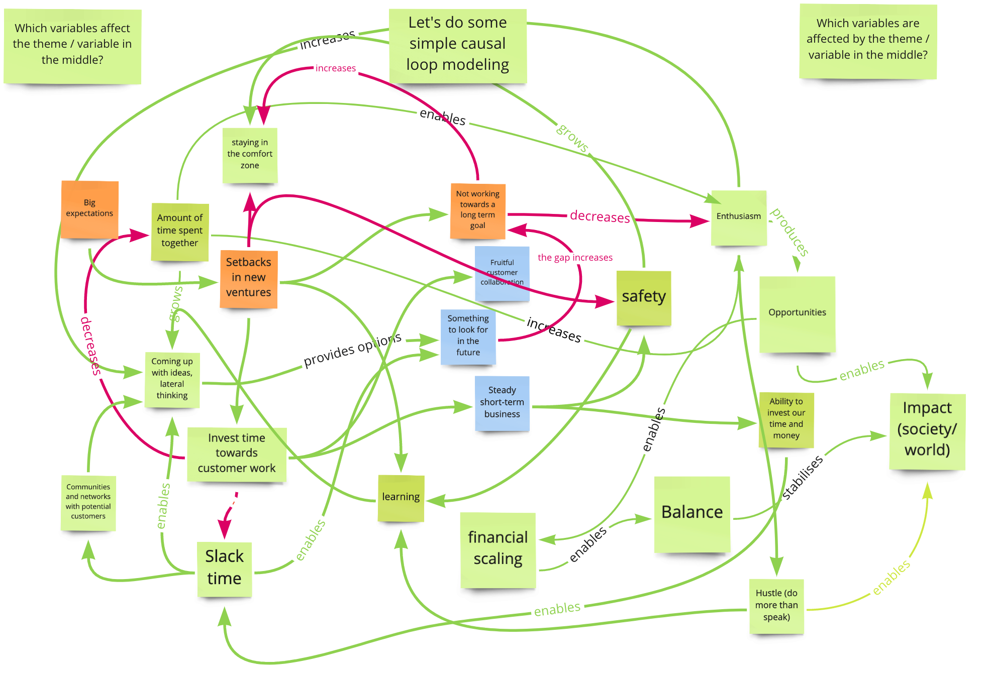 The second individual work phase has a simplified causal loop diagram creation exercise. The retrospective template has some examples to guide your team in this exercise. Here are some links to help introduce the technique to your team: