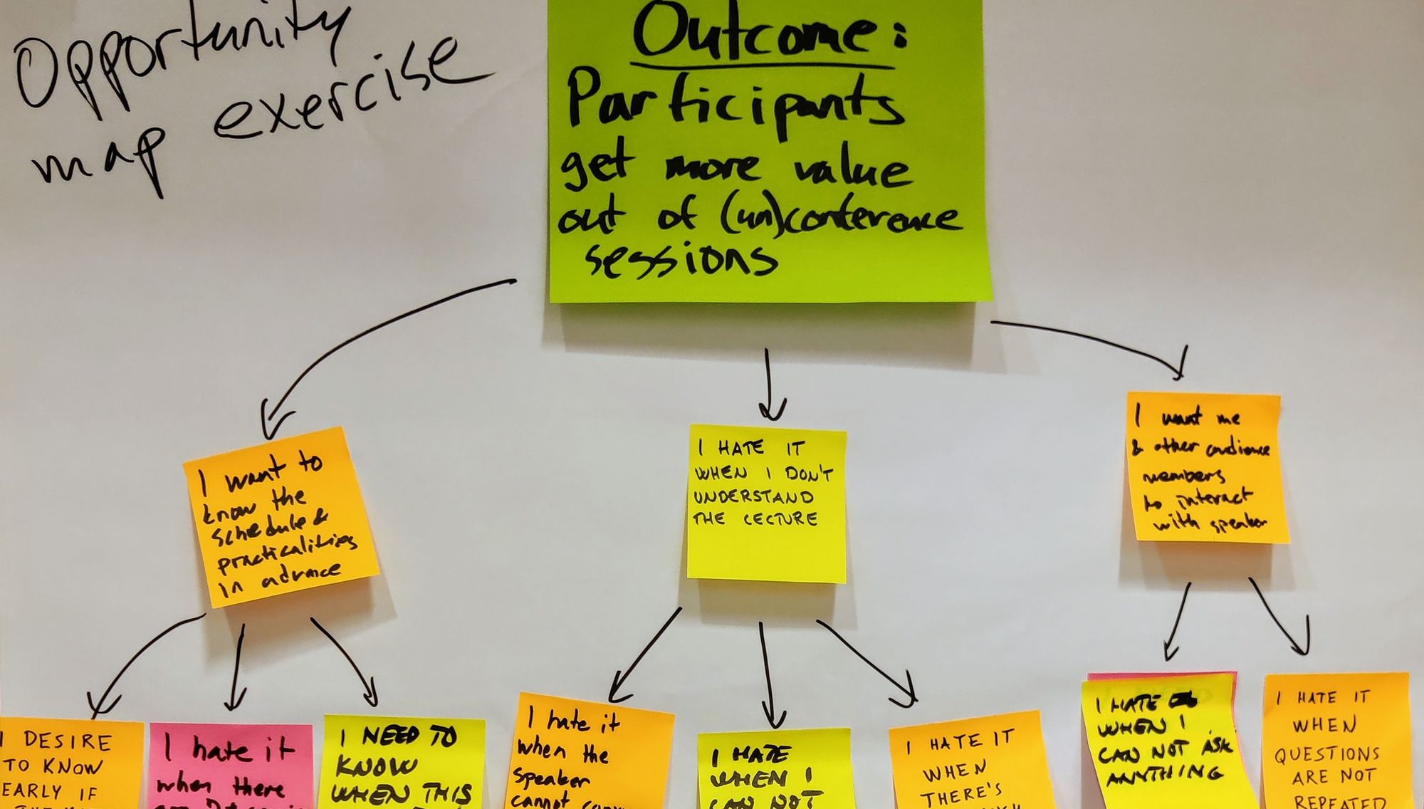 Fasilitoin Agile Coach Camp Finlandissa elokuussa 2022 käytännöllisen johdantosession opportunity mappingiin.