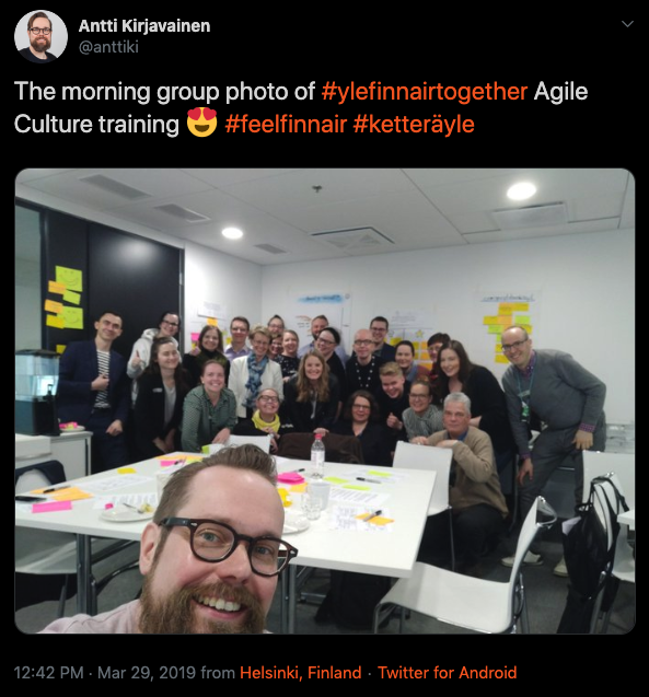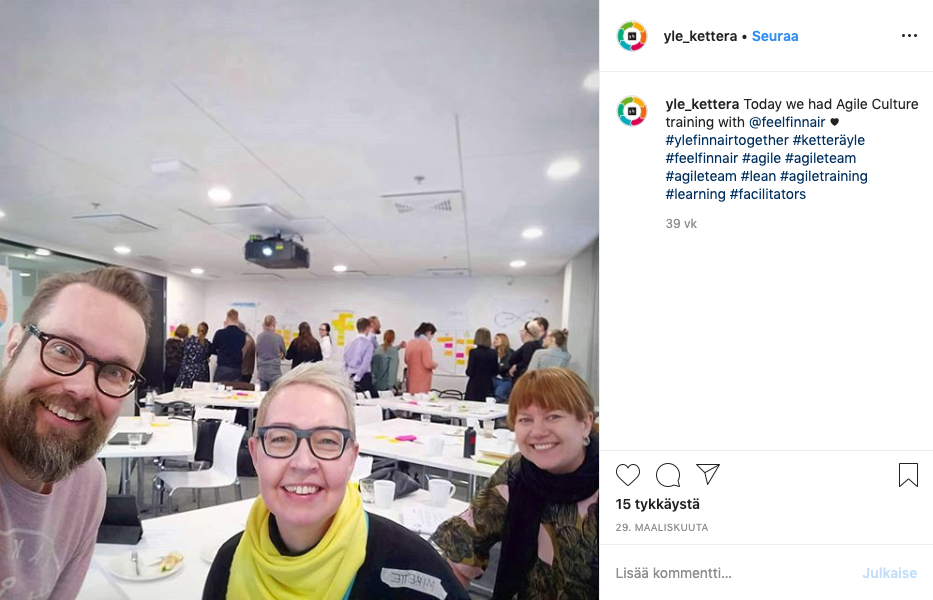 This year I got the unique opportunity to be involved in designing and carrying out this joint coaching curriculum of change leadership for two companies in my role of coach in Yle’s Agile Culture Accelerator. My thanks for this opportunity goes to the two ladies responsible for this curriculum – Laura Ansaharju from Finnair and Mirette Kangas from Yle. Not to forget the ladies who made it possible in practice with their organising and logistics work – Riitta Pyymäki and Heta Andsten!