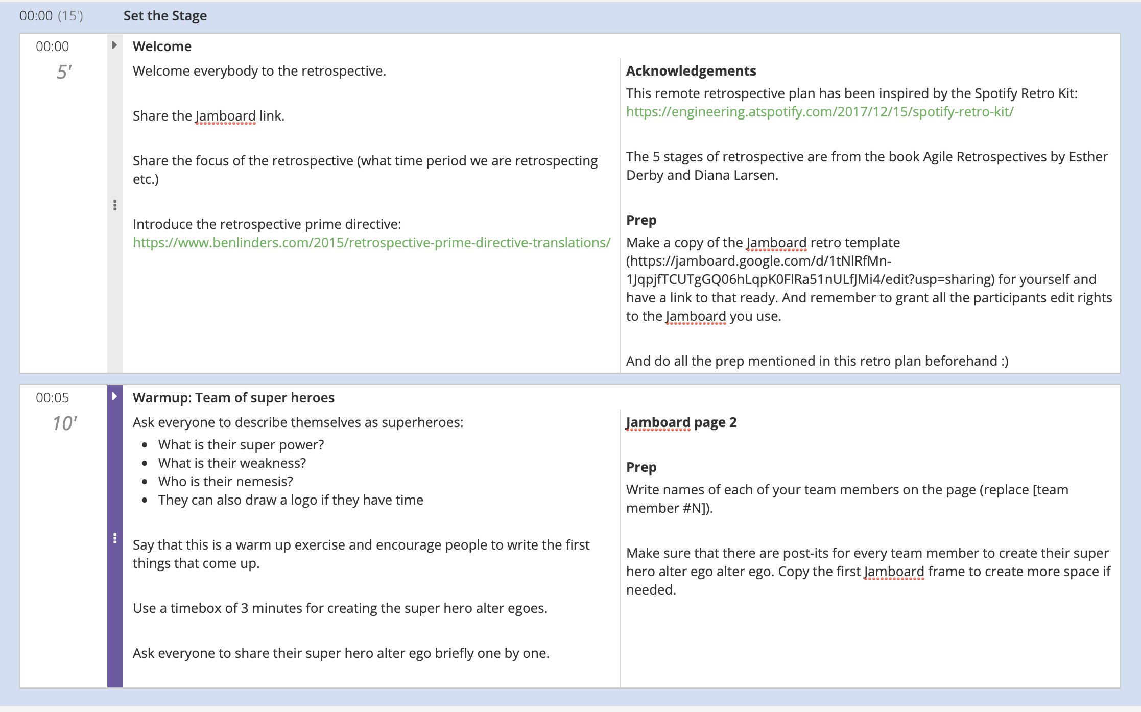 - Here is the retrospective plan (in SessionLab format).