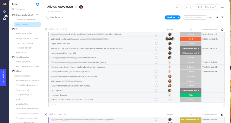 We keep our short-term (weekly) and long-term goals on Monday (http://monday.com/). With Monday, you can create custom workflows and automations. We use it mainly because of the visual and flexible boards. Sort of like a spreadsheet or to-do list that is better suited for visualising and tracking work items.