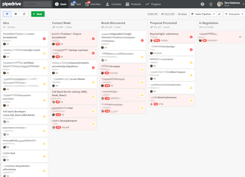 Our CRM of choice is Pipedrive. We love the way Pipedrive models the sales funnel visually. It is easy to get the overview of the on-going cases at a single glance